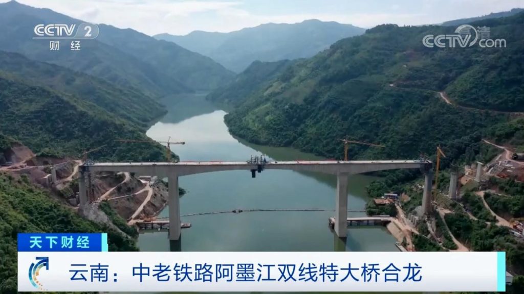 近日,我国最大跨度铁路连续钢构梁——中(国)老(挝)铁路阿墨江双线特大桥成功合龙,这是该铁路最后一座合龙的连续梁,为全线架梁通道的畅通打下了坚实基础。
