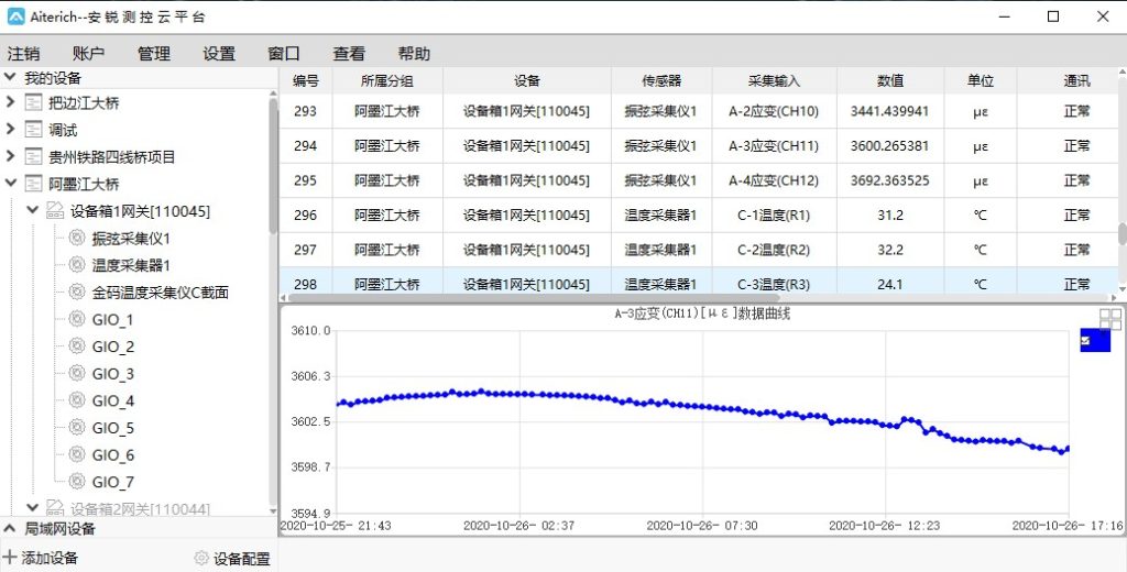 为确保大桥的合拢精度和和工程质量,桥梁施工过程中全程采用深圳安锐科技的结构安全自动化监测系统对桥梁的关键数据进行全天24小时在线监测。该监控系统集成了物联网、无线数据传输、新型传感器、云计算等新技术。可对每一个节段的标高、钢筋应力、混凝土的应变和温度、主墩沉降、水位等数据进行实时在线监测,并通过云服务器对各截面的数据进行分析和预测,根据监测数据对施工参数进行调整,确保每一个节段的精确浇筑,使得梁面整体线形平顺,合龙精度达到毫米级的控制目标。