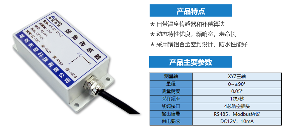 三轴倾斜角度传感器是用来高精度测量三轴倾斜角度的传感器,可用于桥墩、房屋、大坝等建筑物和大型机械的倾斜角度自动化测量。