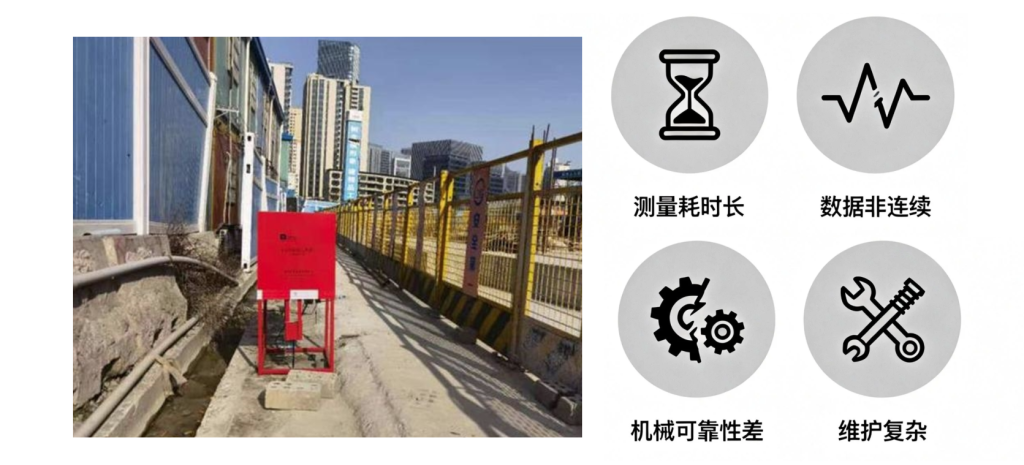 - 数据非连续:仍为间歇式监测,无法实现真正实时连续采集和秒级预警。