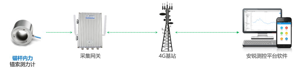 系统主要由锚索测力计、采集器和安瑞云拼图组成,监测数据一目了然, 手机、电脑随时查看数据,异常自动报警