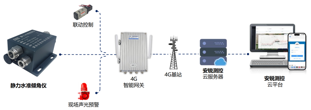 沉降自动化监测系统由静力水准倾角仪、采集设备和云平台组成,可实现数据采集、传输及存储显示、超限预警等功能